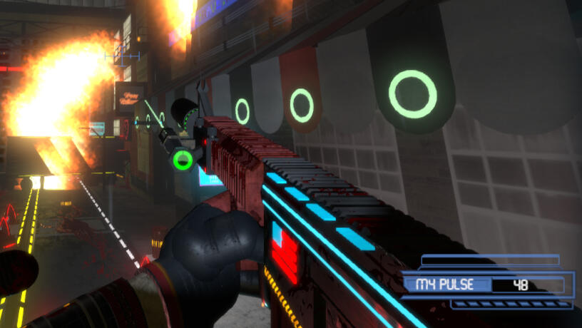 "RAVER ][: Carnage Remixed!" is the second installment in the primary storyboard and picks up the torch where "RAVER: Bliss in Bloodshed!"(Psychotic Edition) left off while also acting as a sort-of reboot. The game takes a darker, more tactical approach to the battle as players will yet again take control of Razor-Sergeant Luna-837 and work to destroy the mutated husks of Retropolia's inhabitants before they completely overrun the land.The game currently has 7 playable levels, an Audio Room where players are able to enjoy the game's soundtrack and the landing interface of a Side Missions mode.Unlike the first game, which relied on the immediate events of the Sergeant's post awakening slaughter fest, RAVER ][ focuses more-so on the atmospheric elements and features darker, more intimidating environments and challenging enemies.